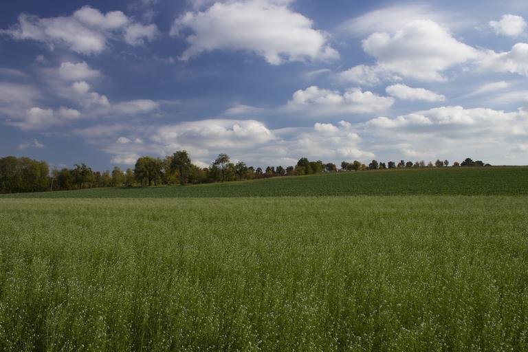 Keywords: field nature tree line agriculture green fields summer cereal sky clouds landscapes