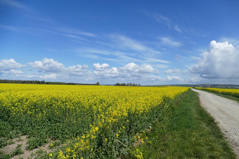 Keywords: field of rapeseeds clouds sky landscape blue