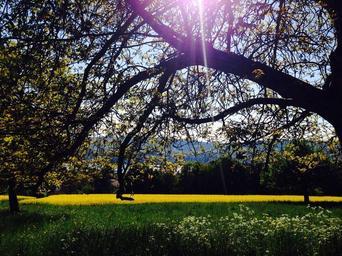 Keywords: field of rapeseeds forest nature tree oilseed rape