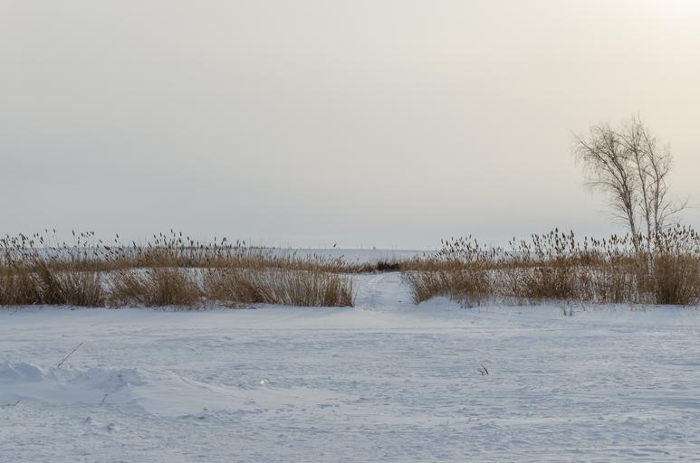 Keywords: field winter wood reed grass nature frost ice transparent ice snow water lake river frozen river kazakhstan tobol cold tree trees