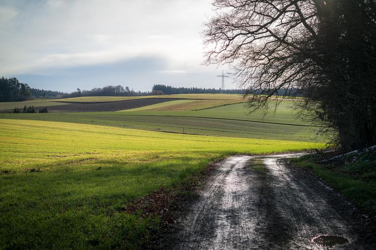 Keywords: fields forest path away strommast arable trail hiking promenade autumn winter lane