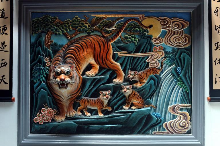 | Keywords: tiger cubs relief sculpture yueh hai ching temple 粤海清庙 wak cheng bio chinese teochew philip street restored restoration unesco asia-pacific asiapacific heritage award national monument singapore public domain publicdomain photo border Fierce growling tiger and three cubs in moonlit mountains, Yueh Hai Ching Temple Explore Jnzl's Photos' 11759 photos on Flickr! | ||||