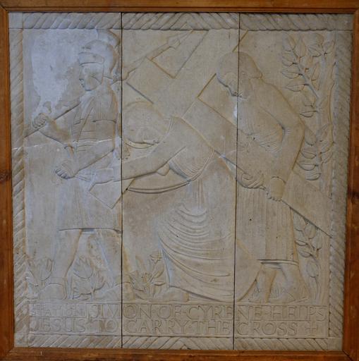 | Keywords: Fifth Station of The Cross, trial panel for Westminster Cathedral, by Eric Gill, 1914, Hoptonwood stone relief in three vertical stones - Harry Ransom Center - University of Texas at Austin - DSC08567.jpg en Exhibit in the Harry Ransom Center - University of Texas at Austin Austin Texas USA This work is old enough so that it is in the public domain 2015-11-17 17 13 02 own Daderot other versions PD-old-70 cc-zero Sculptures in the Harry Ransom Center Eric Gill Stations of the Cross Westminster Cathedral |
