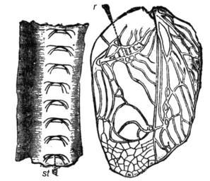 | Keywords: Figure 7 Descent of Man - Charles Darwin - cleaned up.png Figure 7 from The Descent of Man by Charles Darwin Original caption Gryllus Camperstris from Landois Left-hand figure underside of part of a wing nervure much magnified showing the teath st Right-hand figure upper surface of the wing-cover with the projecting smooth nervure r across which the teeth st are scraped Own scan of the book ~ 1870 Various - Charles Darwin Public domain life+70 Image Plate I - figure 4 to 10 - Descent of man - Charles Darwin png PD-old The Descent of Man and Selection in Relation to Sex |