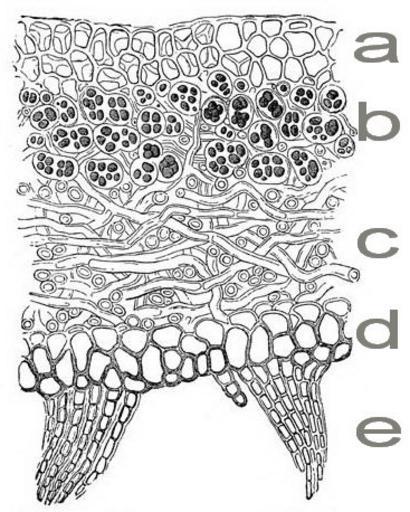 MAKE A MEME View Large Image File-Meyers b6 s0351a.jpg Diagram of Sticta fuliginosa with layers a/b/c/d/e Bild von Sticta fuliginosa mit a/b/c/d/e Ст оение гете оме ного лишайника на п име е Sticta fuliginosa a - ко ковый ...