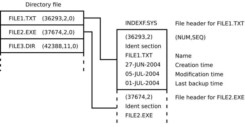 Keywords: Files 11 directory structure.svg This diagram shows an example directory containing 3 files and the way each filename is mapped to the INDEXF SYS entry each INDEXF entry contains more information; only the first few items are shown here own ; based on File Files 11 directory structure png 2004-08-05 Kate talk vectorization own en wikipedia Kate Data management Networks OpenVMS PDP-11 |