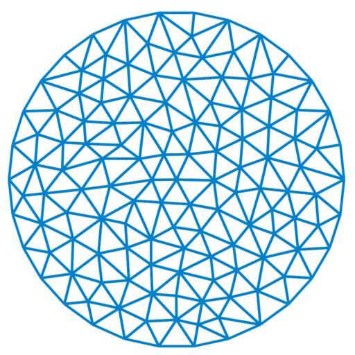 | Keywords: Finite element triangulation.svg Illustration of the en Finite element method the triangulation of the domain self-made with en Matlab 02 18 15 June 2007 UTC Oleg Alexandrov Source code MATLAB The triangulation used in this code and shown above is created with the http //www cs cmu edu/~quake/triangle html Triangle mesh generator <source lang matlab > Solve the problem -\Delta u + c u f with Dirichlet boundary conditions The domain is the disk centered at the origin of radius 1 Its triangulation is read from the end of this file function main c 0; a parameter in the equation see above white 0 99 1 1 1; blue 0 129 205/256; green 0 200 70/256; load the triangulation from the end of the file dummy_arg 0; P get_points dummy_arg ; T get_triangles dummy_arg ; find the number of points and the number of triangles Np k size P ; Nt k size T ; Nb 30; first Nb points in P are on the boundary plot the triangulation lw 1 4; figure 1 ; clf; hold on; axis equal; axis off; for l 1 Nt i T l 1 ; j T l 2 ; k T l 3 ; plot the three edges in each triangle plot P i 1 P j 1 P i 2 P j 2 'linewidth' lw 'color' blue plot P i 1 P k 1 P i 2 P k 2 'linewidth' lw 'color' blue plot P j 1 P k 1 P j 2 P k 2 'linewidth' lw 'color' blue end a hack to deal with bounding box issues s 1 05; plot -s -s ' ' 'color' white ; plot s s ' ' 'color' white ; save as eps and svg needs the plot2svg function saveas gcf 'triangulation eps' 'psc2' plot2svg 'Finite_element_triangulation svg' ; right-hand side f inline '5-x 2-y 2' 'x' 'y' ; f inline '4+0 x 2+0 y 2' 'x' 'y' ; the values of f at the nodes in the triangulation F f P 1 P 2 ; RHS 0 F; RHS RHS Nb+1 Np ; will solve A U RHS an empty sparse matrix of size Np by Np A sparse Np-Nb Np-Nb ; iterate through triangles for l 1 Nt fill in the matrix i T l 1 ; j T l 2 ; k T l 3 ; pii pij pik pjj pjk pkk gii gij gik gjj gjk gkk calc_elems i j k P i P j P k ; One has to consider the cases when a given vertex is on the boundary or not If yes it can't be included in the matrix if i > Nb A i-Nb i-Nb A i-Nb i-Nb + gii + c pii; end if i > Nb j > Nb A i-Nb j-Nb A i-Nb j-Nb + gij + c pij; A j-Nb i-Nb A i-Nb j-Nb ; end if i > Nb k > Nb A i-Nb k-Nb A i-Nb k-Nb + gik + c pik; A k-Nb i-Nb A i-Nb k-Nb ; end if j > Nb A j-Nb j-Nb A j-Nb j-Nb + gjj + c pjj; end if j > Nb k > Nb A j-Nb k-Nb A j-Nb k-Nb + gjk + c pjk; A k-Nb j-Nb A j-Nb k-Nb ; end if k > Nb A k-Nb k-Nb A k-Nb k-Nb + gkk + c pkk; end add the appropriate contributions to the right-hand terms if i > Nb RHS i-Nb RHS i-Nb + F i pii + F j pij + F k pik; end if j > Nb RHS j-Nb RHS j-Nb + F i pij + F j pjj + F k pjk; end if k > Nb RHS k-Nb RHS k-Nb + F i pik + F j pjk + F k pkk; end end plot the sparse matrix more exactly its sign then it is easier to see the pattern figure 6 ; imagesc sign abs A ; colormap 1-gray ; axis ij; axis equal; axis off; save as eps and svg needs the plot2svg function saveas gcf 'sparse_dirichlet eps' 'psc2' plot2svg 'Finite_element_sparse_matrix svg' ; calculate U then add zeros for the points on the boundary U_calc A\RHS; U_calc 0 1 Nb U_calc; exact solution u inline '1-x 2-y 2' 'x' 'y' ; U_exact u P 1 P 2 ; plot the computed solution figure 2 ; clf; plot_solution T P U_calc lw green save as eps and svg needs the plot2svg function saveas gcf 'computed_dirichlet eps' 'psc2' plot2svg 'Finite_element_solution svg' ; plot the exact solution figure 3 ; clf; plot_solution T P U_exact title 'Exact Dirichlet solution' saveas gcf 'exact_dirichlet eps' 'psc2' disp sprintf 'Error between exact solution and computed solution is 0 9g' max abs U_exact-U_calc given the l-th triangle calculate the integrals pij int_K lambda_i lambda_j and gij int_K grad lambda_i dot grad lambda_j function pii pij pik pjj pjk pkk gii gij gik gjj gjk gkk calc_elems i j k P1 P2 P3 extract the x and y coordinates of the points x1 P1 1 ; y1 P1 2 ; x2 P2 1 ; y2 P2 2 ; x3 P3 1 ; y3 P3 2 ; triangle area AT abs x2-x1 y3-y1 - x3-x1 y2-y1 /2; the integrals of lambda_i lambda_j pii AT/6; pij AT/12; pik AT/12; pjj AT/6; pjk AT/12; pkk AT/6; the integrals of grad lambda_i dot grad lambda_j gii x2-x3 x2-x3 + y2-y3 y2-y3 / 4 AT ; gjj x1-x3 x1-x3 + y1-y3 y1-y3 / 4 AT ; gkk x1-x2 x1-x2 + y1-y2 y1-y2 / 4 AT ; gij - x3-x1 x3-x2 + y3-y1 y3-y2 / 4 AT ; gik - x2-x1 x2-x3 + y2-y1 y2-y3 / 4 AT ; gjk - x1-x2 x1-x3 + y1-y2 y1-y3 / 4 AT ; function plot_solution T P U lw color fs Np k size P ; Nt k size T ; create a path in 3D that will trace the outline of the solution X zeros 5 Nt 1 ; Y zeros 5 Nt 1 ; Z zeros 5 Nt 1 ; for l 1 Nt i T l 1 ; j T l 2 ; k T l 3 ; m 5 l-4; X m P i 1 ; Y m P i 2 ; Z m U i ; X m+1 P j 1 ; Y m+1 P j 2 ; Z m+1 U j ; X m+2 P k 1 ; Y m+2 P k 2 ; Z m+2 U k ; X m+3 P i 1 ; Y m+3 P i 2 ; Z m+3 U i ; X m+4 NaN; Y m+4 NaN; Z m+4 NaN; end plot the solution plot3 X Y Z 'linewidth' lw 'color' color set gca 'fontsize' 15 function P get_points dummy_arg P 1 0 0 97799999999999998 0 20799999999999999 0 91400000000000003 0 40699999999999997 0 80900000000000005 0 58799999999999997 0 66900000000000004 0 74299999999999999 0 5 0 86599999999999999 0 309 0 95099999999999996 0 105 0 995 -0 105 0 995 -0 309 0 95099999999999996 -0 5 0 86599999999999999 -0 66900000000000004 0 74299999999999999 -0 80900000000000005 0 58799999999999997 -0 91400000000000003 0 40699999999999997 -0 97799999999999998 0 20799999999999999 -1 5 6700000000000004e-16 -0 97799999999999998 -0 20799999999999999 -0 91400000000000003 -0 40699999999999997 -0 80900000000000005 -0 58799999999999997 -0 66900000000000004 -0 74299999999999999 -0 5 -0 86599999999999999 -0 309 -0 95099999999999996 -0 105 -0 995 0 105 -0 995 0 309 -0 95099999999999996 0 5 -0 86599999999999999 0 66900000000000004 -0 74299999999999999 0 80900000000000005 -0 58799999999999997 0 91400000000000003 -0 40699999999999997 0 97799999999999998 -0 20799999999999999 2 6291902682773483e-17 -0 00065384615384583118 -0 29530436727611131 -0 40714990300538867 0 20468717553848803 -0 45950882973942581 0 5000339709144086 -0 052282439231331621 0 20444