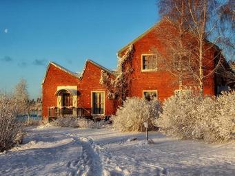 Keywords: finland house home brick architecture sky winter snow ice frost tracks nature outside countryside rural trees