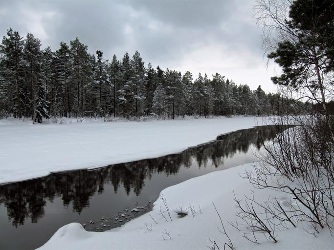 Keywords: finland landscape scenic forest trees woods sky clouds stream water reflections nature outside country countryside rural