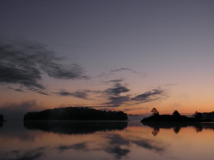 Keywords: finnish savonlinna saimaa water lake sunrise the morning sky sky sunny lake in finland archipelago fog mist autumn landscape morning
