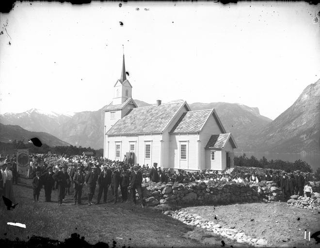 Keywords: Firdastemnet 1912 at Oppstryn.jpg </b> From Firdastemnet arranged by Oppstryn Ungdomslag in 1912 Youth clubs from the entire region of Nordfjord participated To the left are participants from Innvik youth club - their banner reads Opad Fremad Indviken Ungdomslag The partcipants are gathered at Oppstryn church <b>Photographer </b> Knut Aaaning <b>Date </b> 23 june 1912 <b>Medium </b> Glass plate negative <b>Extent </b> 18 x 24 cm <a href http //www fylkesarkiv no/foto/detalj http //www sffarkiv no/sffbasar/default asp p result ptype single db dbfoto sql sfffoto 'SFFf-1995033 268550' rel nofollow >www fylkesarkiv no/foto/detalj http //www sffarkiv no/sff </a> Flickr http //flickr com/photos/37547255 N08/6991944836 Firdastemnet 1912 at Oppstryn 1912-06-23 http //www flickr com/people/37547255 N08 Fylkesarkivet i Sogn og Fjordane Creator Knut A Aaning PD-Old User Flickr upload bot/upload-pd 16 26 11 December 2012 UTC TommyG Images from Fylkesarkivet i Sogn og Fjordane Photographs by Knut A Aaning Oppstryn kyrkje Black and white photographs of groups Black and white photographs of church groups Black and white photographs of religious buildings 1912 photographs 1912 in Norway Files from Flickr uploaded by Tommy Gildseth Black and white photographs of Norway Historical images of Stryn