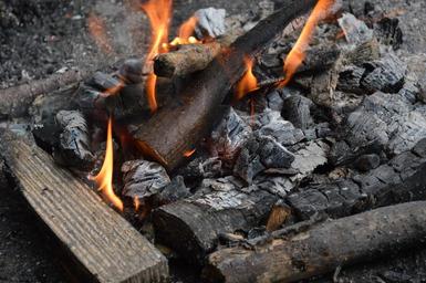 Keywords: fire campfire flame adventure burn heat embers charcoal hot wood fire yellow wood fireplace romantic blaze glow warm break fire place