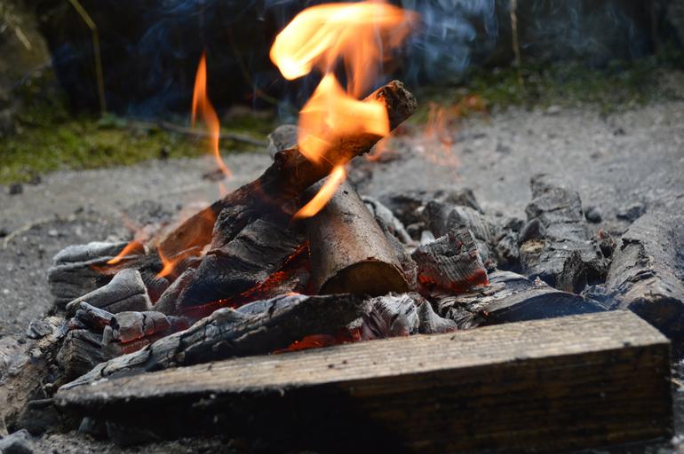Keywords: fire campfire flame adventure burn heat embers charcoal hot wood fire yellow wood fireplace romantic blaze glow warm break fire place