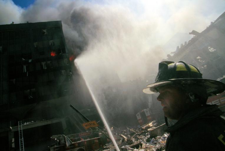 | Keywords: outdoor Fire fighter in front of burning building and rubble following September 11th terrorist attack on World Trade Center, New York City. Sept. 11, 2001. Image. Retrieved from the Library of Congress, www.loc.gov/pictures/item/2002719370/. (Accessed September 03, 2016.) Call Number: LC-A05- E35 [item] [P&amp;P] Forms part of: Collection of unattributed photographs ... The 250 color slides made at the World Trade Towers in New York City on September 11, 2001, received from the New York District Attorney's office from an unattributed photographer, are in the public domain. Privacy and publicity rights may apply. These slides were received from the New York District Attorney's office with the photographer relinquishing any and all copyright and right of attribution. Therefore, the photographer's name will not be associated with these photographs. Note – This image has been digitally adjusted for one or more of the following: - fade correction, - color, contrast, and/or saturation enhancement - selected spot and/or scratch removal - cropped for composition and/or to accentuate subject matter - straighten image Fire fighter in front of burning building and rubble following September 11th terrorist attack on World Trade Center, New York City. Sept. 11, 2001. Image. Retrieved from the Library of Congress, www.loc.gov/pictures/item/2002719370/. (Accessed September 03, 2016.) Call Number: LC-A05- E35 [item] [P&P] Forms part of: Collection of unattributed photographs ... The 250 color slides made at the World Trade Towers in New York City on September 11, 2001, received from the New York District Attorney's office from an unattributed photographer, are in the public domain. Privacy and publicity rights may apply. These slides were received from the New York District Attorney's office with the photographer relinquishing any and all copyright and right of attribution. Therefore, the photographer's name will not be associated with these photographs. Note – This image has been digitally adjusted for one or more of the following: - fade correction, - color, contrast, and/or saturation enhancement - selected spot and/or scratch removal - cropped for composition and/or to accentuate subject matter - straighten image <em>Fire fighter in front of burning building and rubble following September 11th terrorist attack on World Trade Center, New York City<em>. Sept. 11, 2001. Image. Retrieved from the Library of Congress, <a href="http://www.loc.gov/pictures/item/2002719370/" rel="nofollow">www.loc.gov/pictures/item/2002719370/</a>. (Accessed September 03, 2016.)