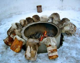 Keywords: fire fireplace embers stool fur district wintry winter flame snow