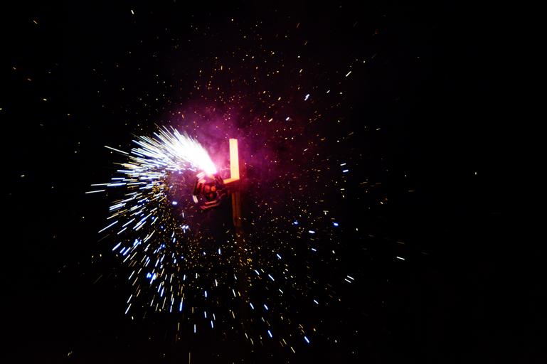 Keywords: fire fireworks sun object turning spray dark light sylvester at night black new year's eve