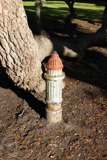 Keywords: fire plug tree old rusty fire plug water nature hydrant