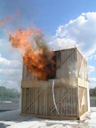 Keywords: Fire research, structural collapse hazards, warning devices (5887635653).jpg NIST researchers working at the Delaware County Pa Emergency Services Training Center in Sharon Hill are examining the behavior of fires under floors in residences and testing devices that could give fire fighters warning of impending collapse Flames coming out of the first doorway of a test structure after the floor has collapsed into the basement Credit NIST Disclaimer Any mention of commercial products within NIST web pages is for information only; it does not imply recommendation or endorsement by NIST Use of NIST Information These World Wide Web pages are provided as a public service by the National Institute of Standards and Technology NIST With the exception of material marked as copyrighted information presented on these pages is considered public information and may be distributed or copied Use of appropriate byline/photo/image credits is requested https //www flickr com/photos/usnistgov/5887635653/ Fire research structural collapse hazards warning devices 2007-08-28 16 18 https //www flickr com/people/63059536 N06 National Institute of Standards and Technology PD-USGov National Institute of Standards and Technology https //flickr com/photos/63059536 N06/5887635653 2016-09-07 02 36 34 United States Government Work Uncategorized 2016 October 17 |