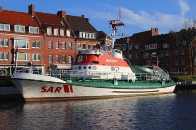 Keywords: fire ship port emden city lifeboat idyllic museumskreuzer water north sea distress