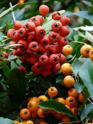 Keywords: firethorn fruits berries hybrid orange red bush pyracantha rowanberries evergreen bush periwinkle spiny ornamental shrub hedge birds bosk ornamental green mixed