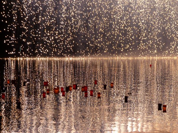 | Keywords: fireworks candles lights serenade lights river swim romance mood love long exposure atmosphere evening night candlelight heat festival of lights festival ulm floating candles red orange yellow water silver rain shower of sparks silver golden shine water surface mirroring reflection |