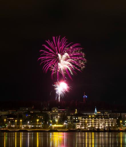 Keywords: fireworks color light colors water reflection new year jyväskylä