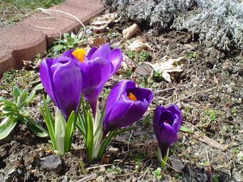 Keywords: First-Crocuses-Of-Spring.jpg Crocuses Anyone who can identify the species could recategorize this image Crocus vernus cultivars Iridaceae in March Crocus vernus