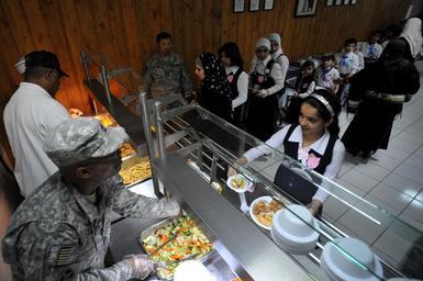 Keywords: First-ever video conference between Iraqi, U.S. children DVIDS129005.jpg en Iraqi children visit the chow hall at Forward Operating Base Falcon Iraq that hosted the first ever video teleconference between Iraqi students and American students on Nov 12 Students from Nolanville Elementary outside of Fort Hood Army Base Texas interact with Iraqi students of Al Khartoon Elementary located in the Doura community of southern Baghdad The students asked each other various questions building relations between their two cultures 2008-11-12 Petty Officer 2nd Class Todd Frantom https //www dvidshub net/image/129005 081112-N-+++++-221 2008-11-16 23 36 FORWARD OPERATING BASE FALCON IQ PD-USGov-Military-Navy Forward Operating Base Falcon Images from DoD uploaded by Fæ |