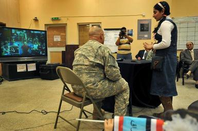 Keywords: First-ever video conference between Iraqi, U.S. children DVIDS129022.jpg en An Iraqi girl speaks via internet conference to American students within the Moral Welfare and Recreation building during her visit to Forward Operating Base Falcon Iraq that hosted the first ever video teleconference between Iraqi students and American students on Nov 12 Students from Nolanville Elementary outside of Fort Hood Army Base Texas interact with Iraqi students of Al Khartoon Elementary located in the Doura community of southern Baghdad The students asked each other various questions building relations between their two cultures 2008-11-12 Petty Officer 2nd Class Todd Frantom https //www dvidshub net/image/129022 081112-N-+++++-900 2008-11-17 00 14 FORWARD OPERATING BASE FALCON IQ PD-USGov-Military-Navy Forward Operating Base Falcon Images from DoD uploaded by Fæ |