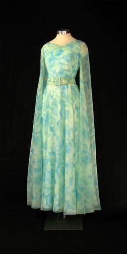 | Keywords: First Lady Betty Ford's pale blue and green gown.jpg Artwork en A chiffon gown designed by Luis Estevez for First Lady Betty Ford The pale blue and green floral dress with floor-length sheer sleeves features a zip up the back and includes two belts and a scarf chiffon fabric - 1976 1977 Institution Gerald R Ford Presidential Museum http //www fordlibrarymuseum gov/library/exhibits/dinners/dinners1976 asp Giscard object history Worn May 17 1976 “ President Valery Giscard d ™Estaing of France; July 27 1976 “ Prime Minister Malcolm Fraser of Australia; March 12 1977 “ Annenberg dinner in honor of Lord Home accession number 1988 1039 15 a-c credit line other versions Gerald R Ford Presidential Library and Museum-cooperation PD-USGov DEFAULTSORT 1976 Betty Ford dresses in the collection of the Gerald R Ford Presidential Museum Chiffon fabric Green dresses Flowered dresses Clothing designed by Luis Estévez 1970s dresses Blue and green clothing |