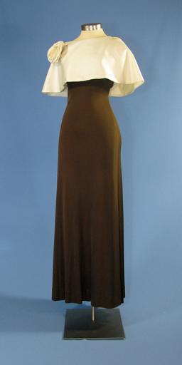 | Keywords: First Lady Betty Ford's brown gown with ivory cape.jpg Artwork en A formal gown with a cape designed by Luis Estevez for First Lady Betty Ford The dark brown jersey gown features a white cape and a train down the back In addition it also has a white flower on the shoulder no sleeves and a zipper up the back jersey fabric 1975 Institution Gerald R Ford Presidential Museum http //www fordlibrarymuseum gov/library/exhibits/dinners/dinners1975 asp Sadat object history Worn October 27 1975 “ President Anwar Sadat of Egypt accession number 1983 19 credit line other versions Gerald R Ford Presidential Library and Museum-cooperation PD-USGov DEFAULTSORT 1975 Betty Ford dresses in the collection of the Gerald R Ford Presidential Museum Jersey fabric Brown dresses Clothing designed by Luis Estévez 1970s dresses |