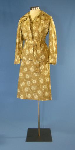 | Keywords: First Lady Betty Ford's brown traveling suit.jpg Artwork en A dress and jacket designed by Albert Capraro for First Lady Betty Ford The beige and white floral print set features a button down front with plastic buttons side breast pockets on the jacket side pockets on the dress a matching tie ribbon and waist belt - 1976 1977 Institution Gerald R Ford Presidential Museum object history Worn April 21 1976 “ First Lady Trip to Texas; June 2 1976 “ Arrival Ceremony for King Juan Carlos and Queen Sophia of Spain; October 11 1976 “ Depart Waldorf Astoria photograph with George Shearing and Great PGA Wives; February 2-3 1977 “ Deware House / Beauty Shop; May 24 1977 “ Dr Fitzmoriss; June 11 1977 “ Return from L A Wilshire with Susan; June 23 1977 “ Dr Cruse and Dr Wallace accession number 1987 690 1 a-d credit line other versions Gerald R Ford Presidential Library and Museum-cooperation PD-USGov DEFAULTSORT 1976 Betty Ford dresses in the collection of the Gerald R Ford Presidential Museum Women's suits Flowered dresses Clothing designed by Albert Capraro Brown dresses 1970s dresses |