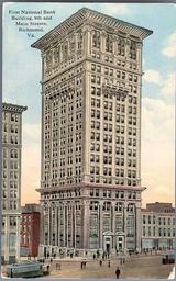Keywords: vcu libraries vculibraries vcu digital collections vcudigitalcollections building architecture building complex outdoor skyscraper Description: This magnificent 19 story office building erected in 1912 occupies this former site of the Chamber of Commerce Bldg., which was torn down to make place for it. It was primarily designed for the joint use of the bank whose name it bears and the C. & O. Ry. Co. and the R. F. & P. Ry. Co., and is one of the highest and most modern structures of its kind in the South. Its towering tiers of floors have been arranged into a symmetrical and well proportioned mass by means of four elevations. The interior decorations and appointments of the building are in keeping with its imposing and signified exterior appearance. Manufacturer: Southern Bargain House, Richmond, Va. Date Postmarked: Not postmarked. Rights: This item is in the public domain. Acknowledgement of the Virginia Commonwealth University Libraries as a source is requested. Reference URL: dig.library.vcu.edu/u?/postcard,540 Collection: Rarely Seen Richmond: Early twentieth century Richmond as seen through vintage postcards Description: This magnificent 19 story office building erected in 1912 occupies this former site of the Chamber of Commerce Bldg., which was torn down to make place for it. It was primarily designed for the joint use of the bank whose name it bears and the C. & O. Ry. Co. and the R. F. & P. Ry. Co., and is one of the highest and most modern structures of its kind in the South. Its towering tiers of floors have been arranged into a symmetrical and well proportioned mass by means of four elevations. The interior decorations and appointments of the building are in keeping with its imposing and signified exterior appearance. Manufacturer: Southern Bargain House, Richmond, Va. Date Postmarked: Not postmarked. Rights: This item is in the public domain. Acknowledgement of the Virginia Commonwealth University Libraries as a source is requested. Reference URL: dig.library.vcu.edu/u?/postcard,540 Collection: Rarely Seen Richmond: Early twentieth century Richmond as seen through vintage postcards |