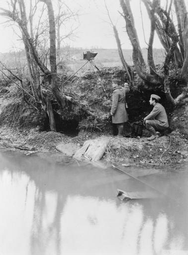 | Keywords: First World War Photographers Q113418.jpg First World War Photographers<br/> An American official photographer of the US Signal Corps and his assistant carry out reconnaissance photography under cover of a deep river bank by the River Aire on the Western Front They are using a glass plate camera mounted on a tripod to photograph the German lines American official photographer US Signal Corps 1918-11-06 First World War Q 113418 205196674 http //media iwm org uk/iwm/mediaLib//39/media-39640/large jpg This image was created and released by the Imperial War Museum on the http //www iwm org uk/corporate/privacy-copyright/licence IWM Non Commercial Licence Photographs taken or artworks created by a member of the forces during their active service duties in the First World War became covered by Crown Copyright provisions and so faithful reproductions may be reused under that licence which is considered expired 50 years after their creation Associated themes United States Army 1914-1918 Western Front 1914-1918 Associated keywords Photography Reconnaissance American First World War Official Exchange Collection photographs PD-USGov American First World War Official Exchange collection Images uploaded by Fæ |
