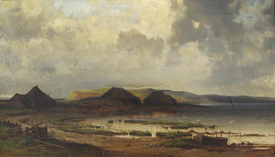 | Keywords: Fischerdorf auf.jpg Antonie Biel 1830-1880 Darstellung eines Fischerdorfes wahrscheinlich auf der Insel Rügen Mönchgut date 1866 oil canvas cm 34 5 60 accession number object history credit line exhibition history A Biel ~ lower right signature Antonie Biel lebte im Entstehungsjahr in Berlin Unter den Linden 38 <br/>Das Gemälde wurde in den 1950er Jahren auf einem Schutthaufen in Gager auf Mönchgut gefunden und 1974 für einen Finderlohn von 100 00 M an die Mönchguter Museen übergeben 1976 erfolgte die Restaurierung im Kulturhistorischen Museum Stralsund Der Keilrahmen trägt große Nummern ž82 und ž387 own Ngschweng 2012-08-22 PD-old-100 Antonie Biel Rügen in art 1860s landscape paintings Landscape paintings of Germany |