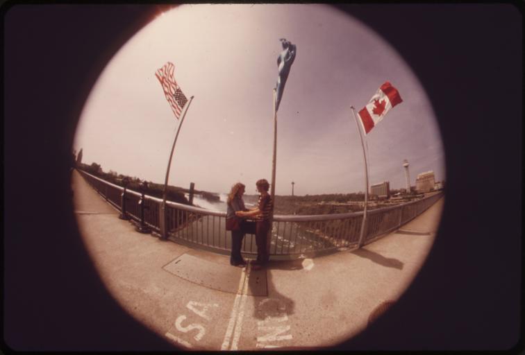 | Keywords: "FISH-EYE" CAMERA VIEW OF UNITED STATES-CANADA BOUNDARY LINE ON RAINBOW BRIDGE, WHICH SPANS THE NIAGARA RIVER JUST... - NARA - 549481.jpg Scope and content General notes 549481 Local identifier 412-DA-6996 Environmental Protection Agency 12/02/1970 - NARA-Author Burns George 1896-1996 Photographer 1340567 <br /> Niagara Falls Niagara New York state United States North and Central America inhabited place 4202458 43 083 -79 05 <br /> Still Picture Records Section Special Media Archives Services Division NWCS-S National Archives at College Park 8601 Adelphi Road College Park MD 20740-6001 1973-05 Record group Record Group 412 Records of the Environmental Protection Agency 1944 - 2006 Record group ARC 708 DOCUMERICA The Environmental Protection Agency's Program to Photographically Document Subjects of Environmental Concern compiled 1972 - 1977 Series ARC 542493 File unit File unit ARC Variant control numbers Agency-Assigned Identifier 117/36/006996<br /> NAIL Control Number NWDNS-412-DA-6996 Other versions <gallery> File FISH-EYE _CAMERA_VIEW_OF_UNITED_STATES-CANADA_BOUNDARY_LINE_ON_RAINBOW_BRIDGE _WHICH_SPANS_THE_NIAGARA_RIVER_JUST _-_NARA_-_549481 tif tif File FISH-EYE _CAMERA_VIEW_OF_UNITED_STATES-CANADA_BOUNDARY_LINE_ON_RAINBOW_BRIDGE _WHICH_SPANS_THE_NIAGARA_RIVER_JUST _-_NARA_-_549481 jpg jpg </gallery> NARA-cooperation PD-USGov Rainbow Bridge Niagara Falls National flag of Canada with other flags Photographs of the national flag of Canada 1973 in Ontario May 1973 in the United States 1973 at international borders Fisheye images Round photographs Bridges photographed in 1973 Photographs of flags of the United States 1973 in New York United Nations flags and insignia May 1973 photographs |