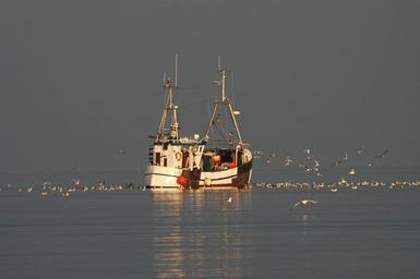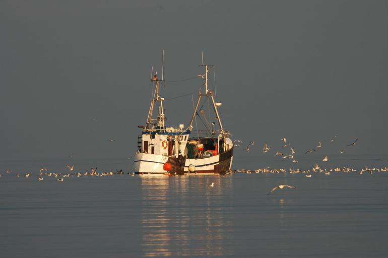Keywords: fishing boat baltic sea sea water coast gulls boot fishing vessel sunset