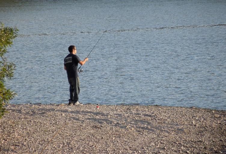 Keywords: fishing pole water lake atascadero landscape nature lakes stone rock lake view fisherman