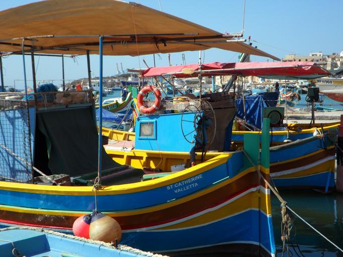 Keywords: fishing port malta marsaxlokk boats fishing boats sea coast wooden boat investors pier fischer colorful