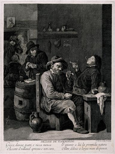 | Keywords: Five Flemish men, old and young alike, smoke and drink in a Wellcome V0019042.jpg object history exhibition history credit line Wellcome Images http //wellcomeimages org/indexplus/obf_images/31/a2/6db8fe32724b81a3263f49139b5e jpg Gallery http //wellcomeimages org/indexplus/image/V0019042 html accession number PD-old-auto-1923 1799 Images uploaded by Fæ Wellcome V0019042 jpg Files from Wellcome Images check needed V0019042 jpg Works after David Teniers the Younger Thomas Major | ||||