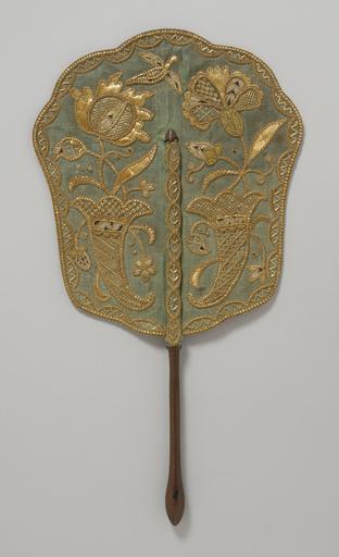 | Keywords: Fixed fan green silk straw embroidery c 1740 LACMA M82 122 2 2.jpg Fixed fan of green silk with straw embroidery and wooden handle England c 1740 circa 1740 http //collectionsonline lacma org/mwebcgi/mweb exe request record;id 44109;type 101 LACMA Image Library Photograph LACMA green silk with straw embroidery and wooden handle cm 40 7 22 3 institution Los Angeles County Museum of Art Costume and Textiles Department object history credit line Costume Council Fund accession number M 82 122 2 PD-LACMA PD-old-100 Uploaded with UploadWizard Hand fans Fans in the Los Angeles County Museum of Art Pomegranates in art Carnations in art Straw embroidery Silk hand fans |