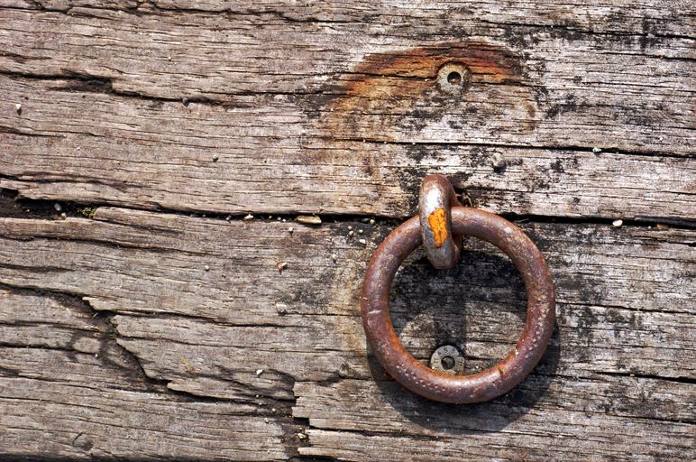 Keywords: fixing ring metal fix metal ring wood bohlen board old eyelet connection weathered rusty stainless