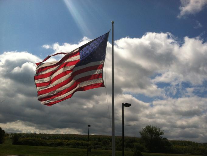 Keywords: flag light field sky cornfield clouds rays fall autumn new jersey