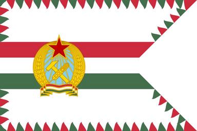 | Keywords: Flag of the Minister of Defence of Hungary (1950-1955, afloat).svg  flag Ensign of the Minister of Defence of Hungary from 12 April 1950 to 1955 Honvéd Folyami Flottilla honvédelmi miniszteri lobogója 1950 április 12 és 1955 között 2013-12-02 21 08 53 own cite journal 1610/H Mü Pk 5 “ 1950 számú körrendelet Úszó-egységek hadilobogóinak rendszeresÃtése Honvédségi Közlöny 4 May 1950 77 12 233 “234 Coat of arms of Hungary 1949-1956 svg Thommy cc-zero PD-Hungary Insignia Uploaded with UploadWizard Flags with hammers Flags with one red five-pointed star Flags with wheat Flags with wreaths Green red white flags Naval rank flags of Hungary SVG flags - naval of Hungary SVG flags - historical of Hungary SVG flags with an aspect ratio of 3 2 Swallowtails flags |