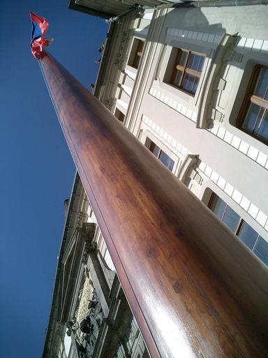 Keywords: flag pole wooden flag pole flag pole blue sky flagpole building wind waving symbol national