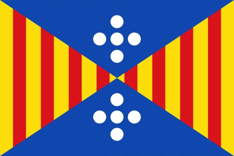 | Keywords: Flag of Vilagrassa Spain.svg Bandera de Vilagrassa Lleida Espanya Bandera apaïsada de proporcions dos d'alt per tres de llarg quarterada en aspa amb els triangles superior i inferior blaus amb cinc disc blancs posats en creu cadascun de diàmetre 1/12 de l'alçària del drap i separats per 1/36 de la mateixa alçada centrats a cada un dels dos triangles; i els triangles dels costats grocs cadascun amb quatre pals vermells <ref> cite web http //www gencat cat/eadop/imatges/2981/99243018 pdf RESOLUCIÓ d'1 de setembre de 1999 per la qual es dóna conformitat a l'adopció de la bandera del municipi de Vilagrassa 2012-06-01 1999-09-23 pdf DOGC núm 2981 Generalitat de Catalunya català </ref> Bandera de Vilagrasa Lérida España Bandera de proporciones 2 3 cuartelada en aspa con los triángulos superior e inferior azules con cinco discos blancos puestos en cruz cada uno de diámetro 1/12 de la altura del paño y separados por 1/36 de la misma altura centrados en cada uno de los dos triángulos; y los triángulos de los lados amarillos con cuatro palos rojos <ref> cite web http //www gencat cat/eadop/imagenes/2981/99243018 pdf RESOLUCIÓN de 1 de septiembre de 1999 por la que se da conformidad a la adopción de la bandera del municipio de Vilagrassa 2012-06-01 1999-09-23 pdf DOGC núm 2981 Generalidad de Cataluña español </ref> en Flag of Vilagrassa in Lleida province Spain Flag quartered in saltire Blue top and bottom each with five white discs in the shape of a cross the discs as wide as 1/12 of the flag's height and separated from one another by 1/36 of the flag's height centred on each triangle Yellow hoist and fly each with four vertical red stripes Source http //flagspot net/flags/es-l-vgs html References reflist Own Nethunter 2008-08-30 insignia Catalonia <gallery>Bandera de Vilagrassa svg Bandera de Vilagrassa svg</gallery> Flags of municipalities of the province of Lleida Vilagrassa Vilagrassa SVG flags of Spain SVG flags with an aspect ratio of 3 2 Diagonal quartered flags |