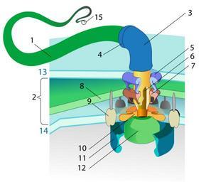 Keywords: Flagellum base diagram keys.svg see en talk page Image moved from File Flagellum bacterial numbered svg Numbered version from Image Flagellum base diagram en svg A Gram-negative bacterial flagellum --- Flagellum plural flagella is a long slender projection from the cell body Its function is usually to propel a unicellular or small multicellular organism Own 2008-03-04 Mariana Ruiz Villarreal LadyofHats Other versions/Flagellum base diagram LadyofHats Bacteria diagrams Procaryota cell diagrams Flagella Diagrams labelled with numbers only