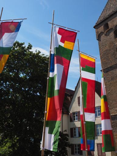Keywords: flags colorful blow wind flutter danube fixed ulm