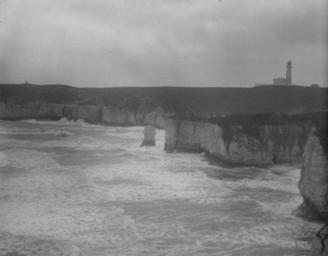 Keywords: Flamborough Head YORYM-S158.jpg A view along the coast towards Flamborough with the lighthouse seen in the background to the right; the sea is to the left and there are sizeable waves rolling in There is a stack in the middle of the photograph The tide is out and a dark line can be seen along the base of the white chalk showing where it comes to when fully in The wave-cut notch near the base of the cliffs the white chalk and the capping of boulder clay are all clearly seen depicted people depicted place 1900-1912 glass plate negative 125mm long edge x 100mm short edge institution Yorkshire Museum object history exhibition history credit line accession number YORYM S158 York Museums Trust image PD-old-70-1923 PD-US Images from The Sydney Harold Smith Collection Selwicks Bay Flamborough Chalk cliffs of Flamborough Flamborough Head Lighthouse History of Flamborough Black and white photographs of England Uploaded with UploadWizard |