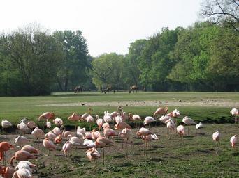Keywords: Flamingo-Dromedar.JPG English Tierpark Berlin - Flamingos and Dromedary Camels Deutsch Tierpark Berlin - Blick über die Flamingolagune zu den Dromedarwiesen own own picture 2007-04-25 Fluvorix Unidentified Phoenicopteridae in zoos Birds at Tierpark Berlin |